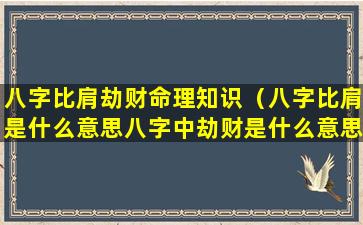 比肩在八字中多为吉神,劫财则吉 💐 凶参半。