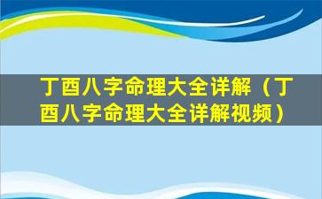 丁酉 🐞 八 🦊 字命理大全详解视频 🦢