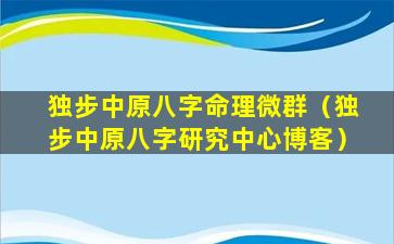 欢迎加 ☘ 入独步中原八 🦁 字命理微 🍀 群,由资深命理师独步中原主讲。