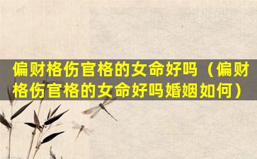 婚姻女命偏财格伤官格的婚姻 🦊 状况,主要 🦁 取决于八字的整体格局。如,果八字格局好则婚姻比较顺利如果八字格局;不,好 🐕 。则婚姻容易出现问题