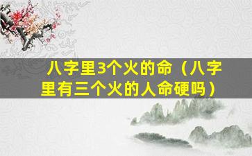 但需要注意的是,即,使,八字中有三个火但其他因素不利命主也可能不命硬因。此,命硬。与否需由专业命理师根 🌲 据具体命局综合判断