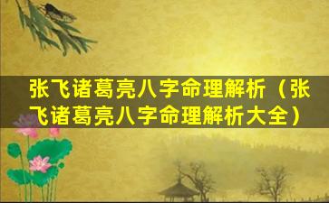 张飞和诸葛亮 🌷 的命格 🦅 比较