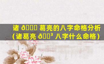 诸 🌼 葛 🕷 亮的 🐵 八字