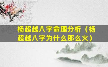综合来看,杨,超,越的八字火旺一方面为其带来了才华和名气另一方面也需要 🐈 注 🐡 意五行平衡和身体健康 🐛 。