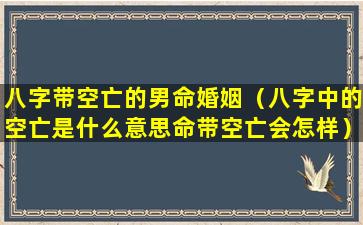 假空亡假空 🐎 亡男命 🌲 婚姻: