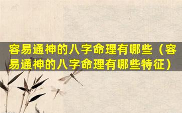 需要注意的 🍁 是,以,上只是容易通神的八字命理特征具体情况还需要结合八字的整体格局、大运流年等因素综合分析。