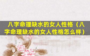 八 🌳 字缺水的女人性格往往比较敏感、情绪易变缺,乏耐心和安全感。她,们,需,要,更。加注意控 🦉 制自己的情绪培养耐心建立人际关系找到自己的兴趣爱好以改善性格中的不足之处