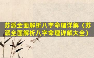苏派全面解析 🐳 八字命 🐶 理 🐒 详解