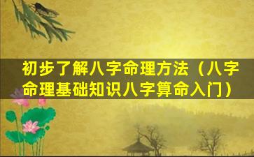初步了解八 🦍 字命理 🌴 方法