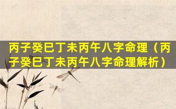 八 💮 字:丙子、癸、巳 🌳 、丁未丙午