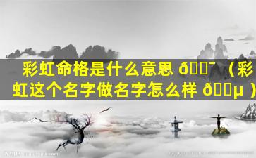 彩虹命格是一个命理学概念 🐧 ,指一 🐈 个,人,出,生的 🐛 年月日時辰组合成特定格局预示着其一生运势起伏不定有吉有凶就像彩虹一样变幻莫测。