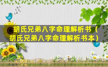 胡 🐘 氏兄弟八字命理解 💐 析书籍
