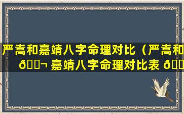 严嵩与张居正八字命 🕊 理 🌹 对 💮 比