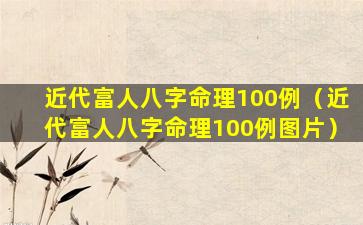 本章節將列舉100位近代富 🦢 人的八字命例,進,行詳細解析包 🐱 括: