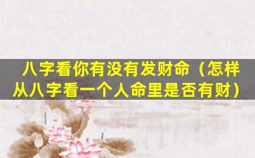 从八字看 🐯 命 🌷 中是否有 🐱 大财
