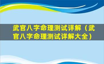 武官 🐱 八 ☘ 字命 🐶 理测试详解大全