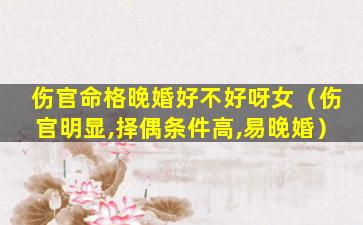 伤官命格晚婚好不好因人而异 🐈 ,建,议咨询专业命理师结合命局全盘进行分析。