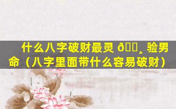 破财的八 🌲 字男命