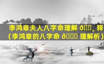 李 💮 鸿章夫人蔡氏八字命理解释