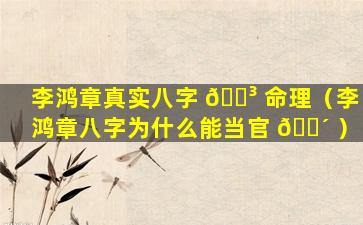 李 🍁 鸿章八字 🐱 命理分析