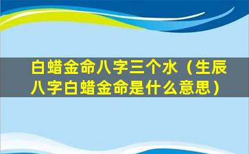 补充说明生 🌴 辰八 💐 字白蜡金命是一个比较笼统的说法,具体运势还需要根据命盘 🐟 中其他因素进行综合分析。建。议找专业命理师进行详细解读