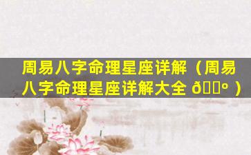 详解周易八字命理星座详解是 🐺 一种 🐴 结合了 🐼 周易八字、和星座的命理分析方法。
