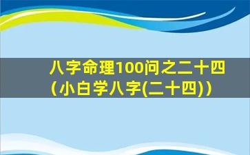 八字命 🌿 理100问之二十四