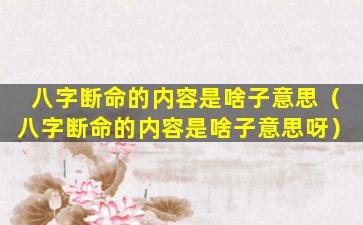 2、八字断命的内容是啥子意 🕷 思呀