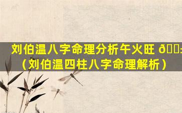 性格特点:刘琏八字中阳刃格显露,性格,刚强果断有勇有谋。伤,官,食。神,旺,盛。才华横溢辩 🐅 才无碍但同 🌵 时也容易锋芒毕露得罪小人