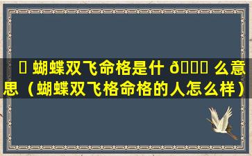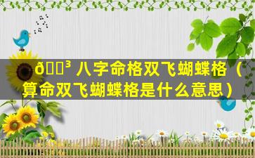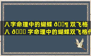 在八字命理中 🐎 ,双飞蝴蝶 🌷 格 🦄 是一种特殊格局。
