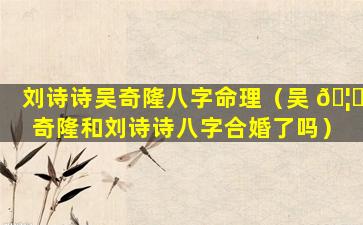 刘诗 🐕 诗、吴奇隆八字 🦋 合 🐯 婚: