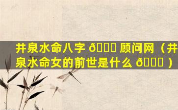 井泉水命八字顾问网 🕸