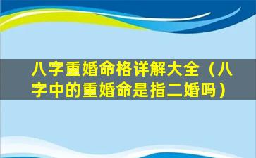 八字重婚命格 🐋 详 🍀 解 🐋 大全