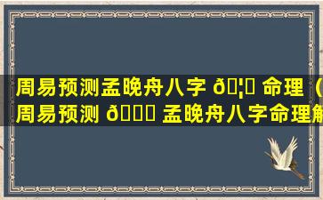 孟晚舟 🦆 八 💐 字 🐛 命理