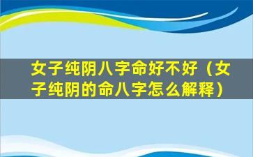 女子纯阴命八 🦄 字的解释