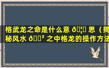 1、72格龙分金 🌹 与仙命的生克 🕷
