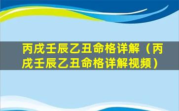 丙 ☘ 戌壬 🦉 辰乙丑命 🦟 格详解图
