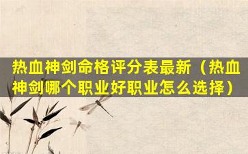 热血神剑命格评 🐴 分 🐼 表最新 🐅