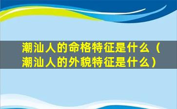 需要 🌿 注意的是,以,上仅为潮 🍁 汕人普遍存在的命格特征具体到个 🐳 体可能有所差异。