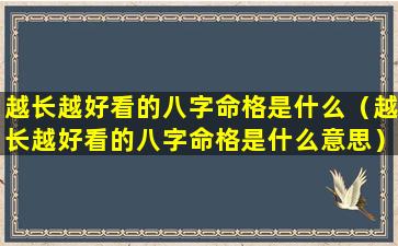 “越 🍁 长越好看的八字命格”是指一个人的八字命盘中具有以下特征,表明其容貌随着年龄的增长会变得越来越好看: