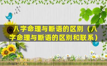 性质不同:八字命理是一门理论体系,提供命盘字符的含义和推 🐶 演方法;断,语则是基于八字命理理论对特定命盘字符组合进行吉祥、凶险的预测判断。