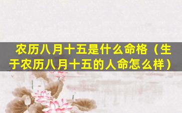 农历八月十五出生的人一般是中秋 🐞 节,在命理学上称为“团圆命”。