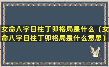 丁 🐟 卯 🦁 日柱格局特点 🐎