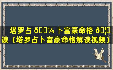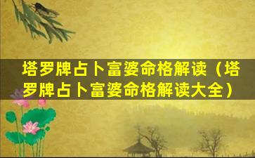 塔 🦆 罗牌占 🦅 卜:你 🐧 有富婆命吗?