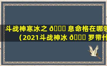 寒 🦢 冰命格在斗战神中是一个较为强力的命格,拥有以下优 🦉 势: