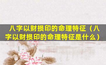 财星克制印星的命理组合称为财「损 💐 印」。此组合的特点 💐 如下: