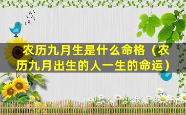 出 🐋 生在农历九月的人出生,于,秋季的 🐴 最后一个月处于秋收冬藏 🐶 的季节。