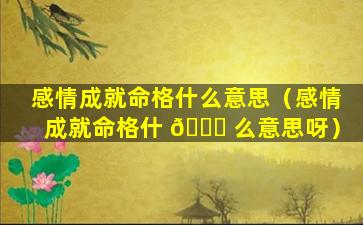 “感情成就命格”这 🦅 句话的意思 🕷 是 🦁 :