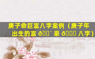 综 🦈 合来看,庚,子,命,巨富八字案例中的八字格局身弱财旺财星动 🌵 荡求财 🐞 多变故聚财能力弱。但,大。运中有辛亥大运财运大旺有望获得巨额财富