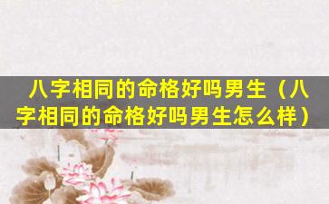 在命理学中,八字相同的男命格好不好需要综合八字格局和五行生克制化来判断八字相同。并,不代表命格相同因为命格的影响因素还 🐼 有出生时间出生、地。点等